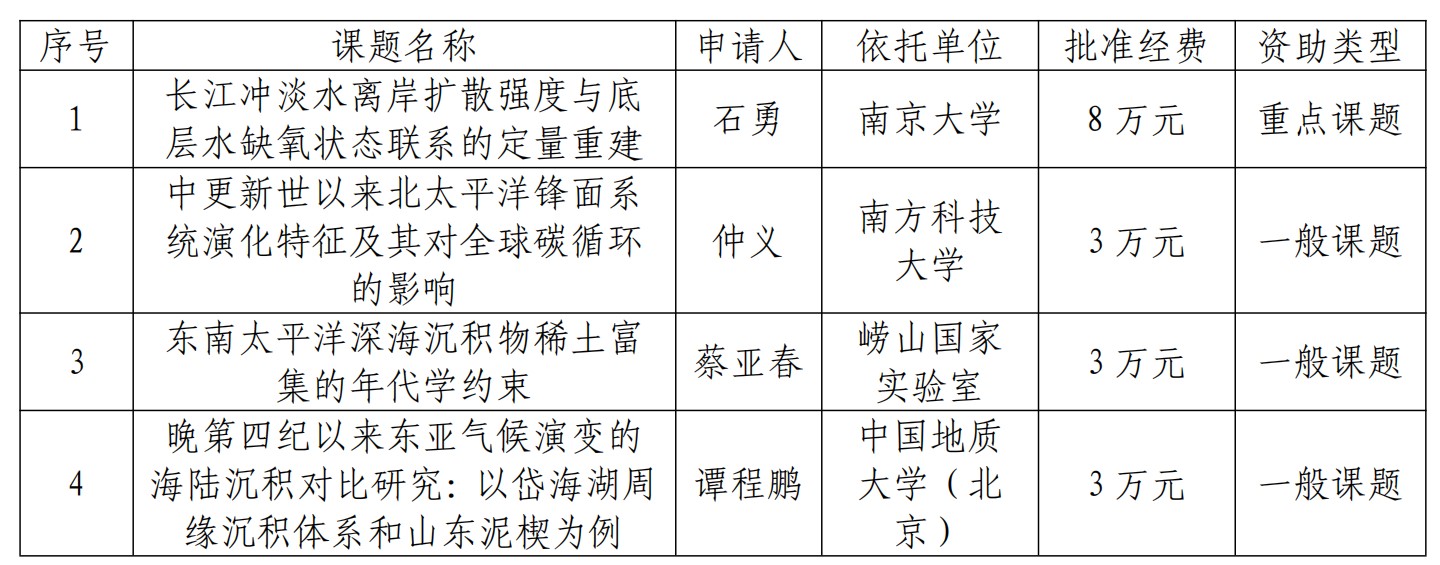 關(guān)于自然資源部海洋地質(zhì)與成礦作用重點(diǎn)實(shí)驗(yàn)室2025年開放基金擬資助課題的公示