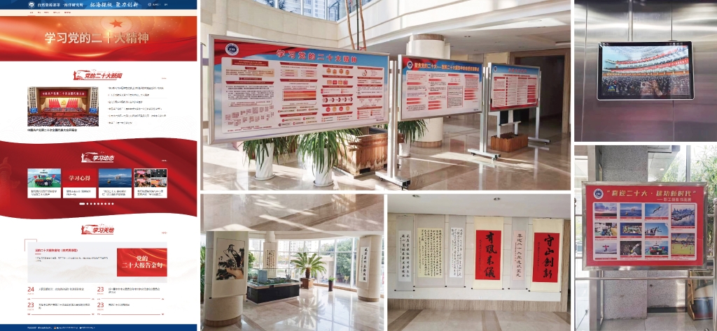 我所把網(wǎng)絡(luò)傳播平臺(tái)作為黨的二十大精神宣傳的重要陣地,通過所官網(wǎng)、微信公眾號(hào)等方式大力宣傳黨的二十大精神,宣傳我所學(xué)習(xí)貫徹黨的二十大精神的具體舉措和實(shí)際行動(dòng)。我所在所官網(wǎng)開設(shè)學(xué)習(xí)黨的二十大精神專題網(wǎng)頁,在所區(qū)布置學(xué)習(xí)黨的二十大精神的宣傳展板,在各辦公樓電梯間播放學(xué)習(xí)視頻,在所屬各黨支部設(shè)置學(xué)習(xí)黨的二十大精神專欄,組織學(xué)習(xí)黨的二十大精神專題書畫攝影比賽、系列職工活動(dòng),積極營造學(xué)習(xí)宣傳貫徹黨的二十大精神的濃厚氛圍。