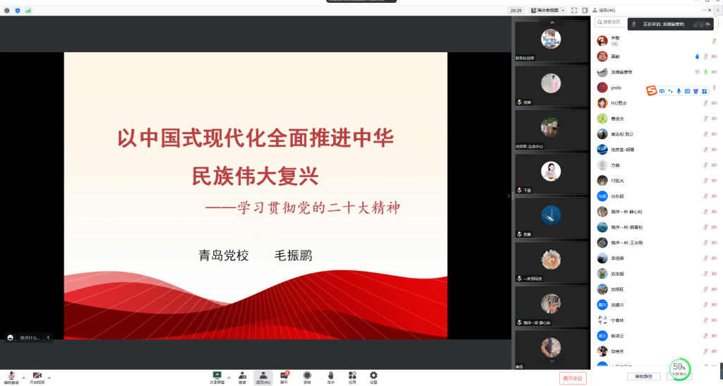 我所邀請(qǐng)了中共青島市委黨校趙立波教授圍繞“實(shí)施科教興國戰(zhàn)略,強(qiáng)化現(xiàn)代化建設(shè)人才支撐”作學(xué)習(xí)黨的二十大精神專題講座。趙立波教授對(duì)黨的二十大報(bào)告中有關(guān)“教育”、“人才”、“科技”三個(gè)方面的論述作了細(xì)致講解,講座主題鮮明,脈絡(luò)清楚,思想深邃,對(duì)于大家全面領(lǐng)會(huì)、正確把握黨的二十大精神提供了指導(dǎo)幫助。