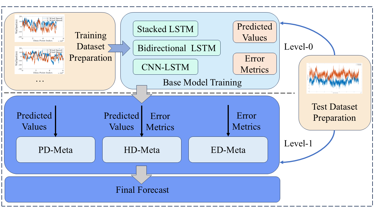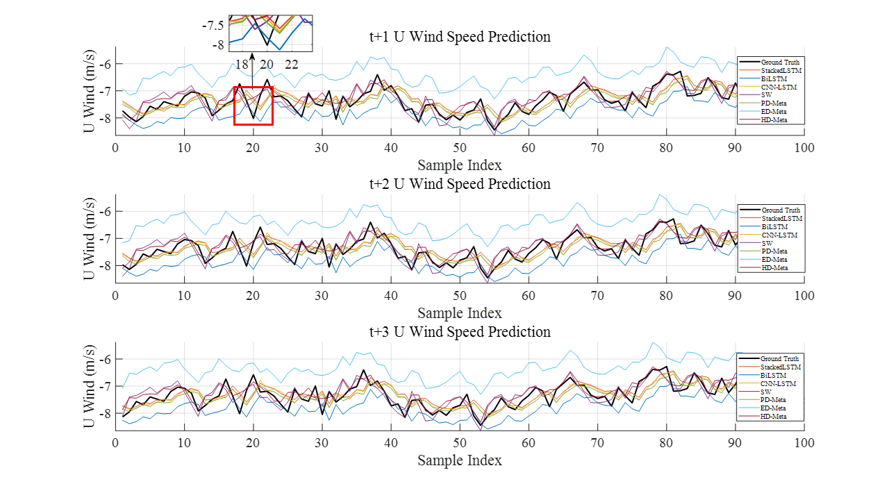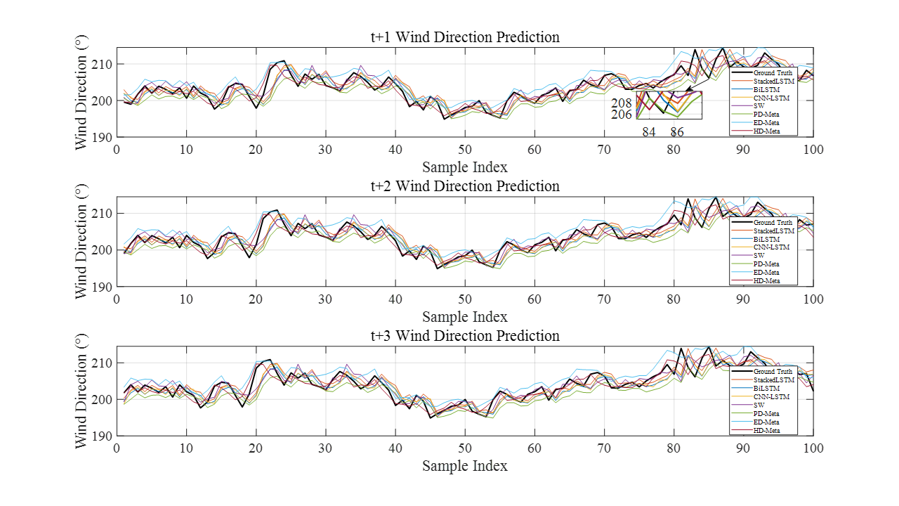 針對這一問題,研究人員提出了一種創(chuàng)新性的混合驅(qū)動元學習(HD-Meta)預測框架。該方法通過多模型融合與元學習機制,將不同學習器的預測結(jié)果和誤差信息進行聯(lián)合建模,從而在提升預測精度的同時兼顧計算效率。實驗結(jié)果表明,HD-Meta 在短時風速和風向預測任務中均優(yōu)于傳統(tǒng)方法,尤其在捕捉微小風向變化方面表現(xiàn)突出,為無人帆船在復雜海洋環(huán)境中的自主航行提供了更加可靠的風場感知支持。