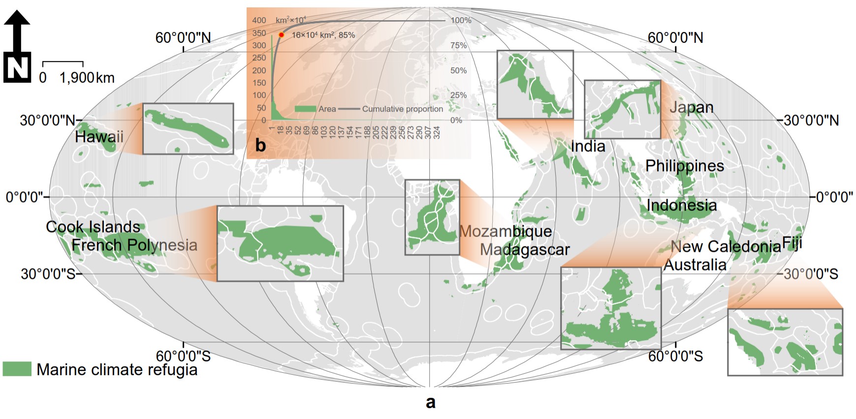近日,我所科研團隊在全球海洋生物多樣性保護研究領(lǐng)域取得重要進展。該研究提出以氣候韌性和保護共識作為評價標(biāo)準(zhǔn),首次在全球尺度上系統(tǒng)識別了海洋氣候庇護所(Marine Climate Refugia, MCR),為應(yīng)對氣候變化下的海洋生物多樣性保護提供了關(guān)鍵科學(xué)依據(jù)。