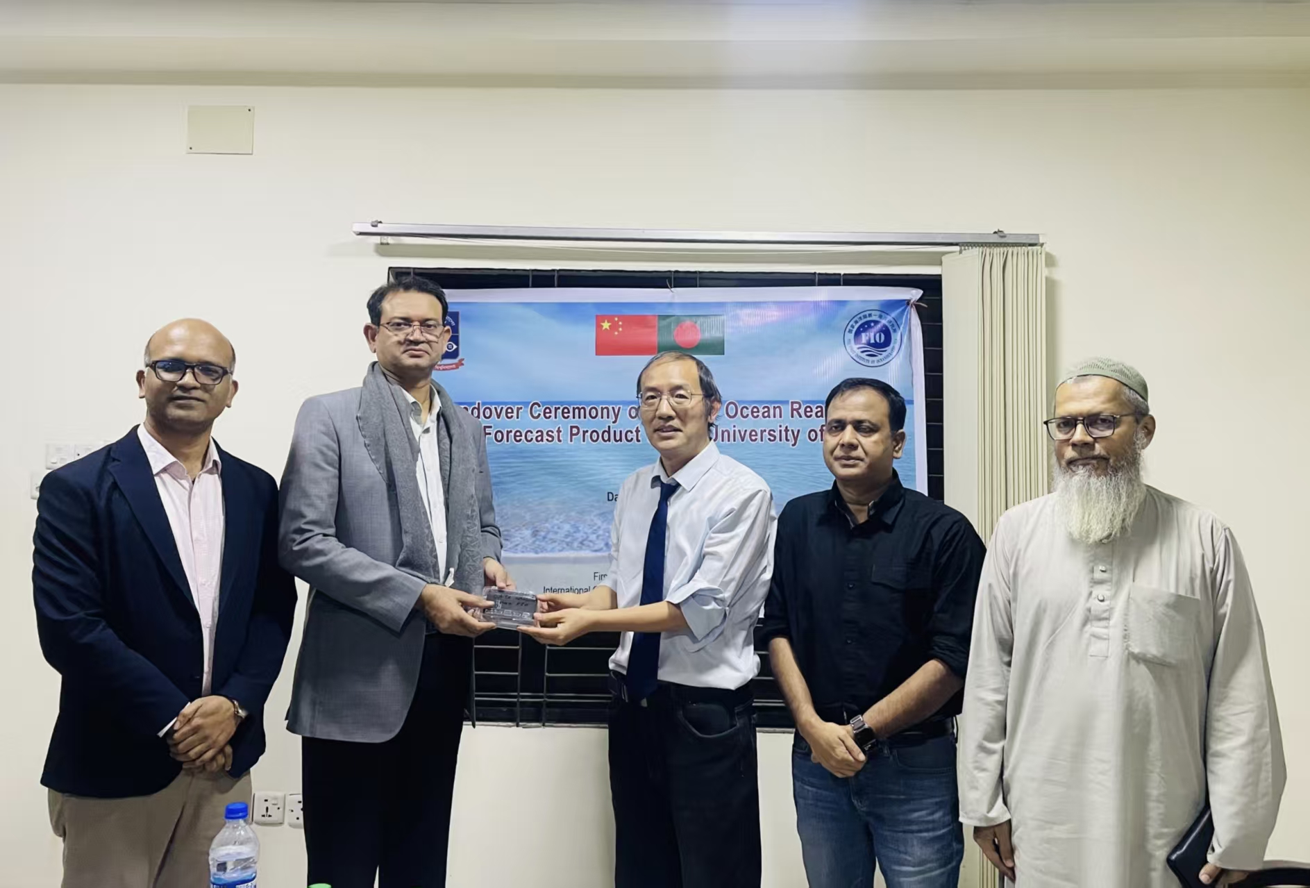 夏長水正高級工程師向達卡大學地球與環(huán)境科學學院院長Md. Humayun Kabir博士移交孟加拉國周邊海域海洋環(huán)境再分析產品和預報產品
