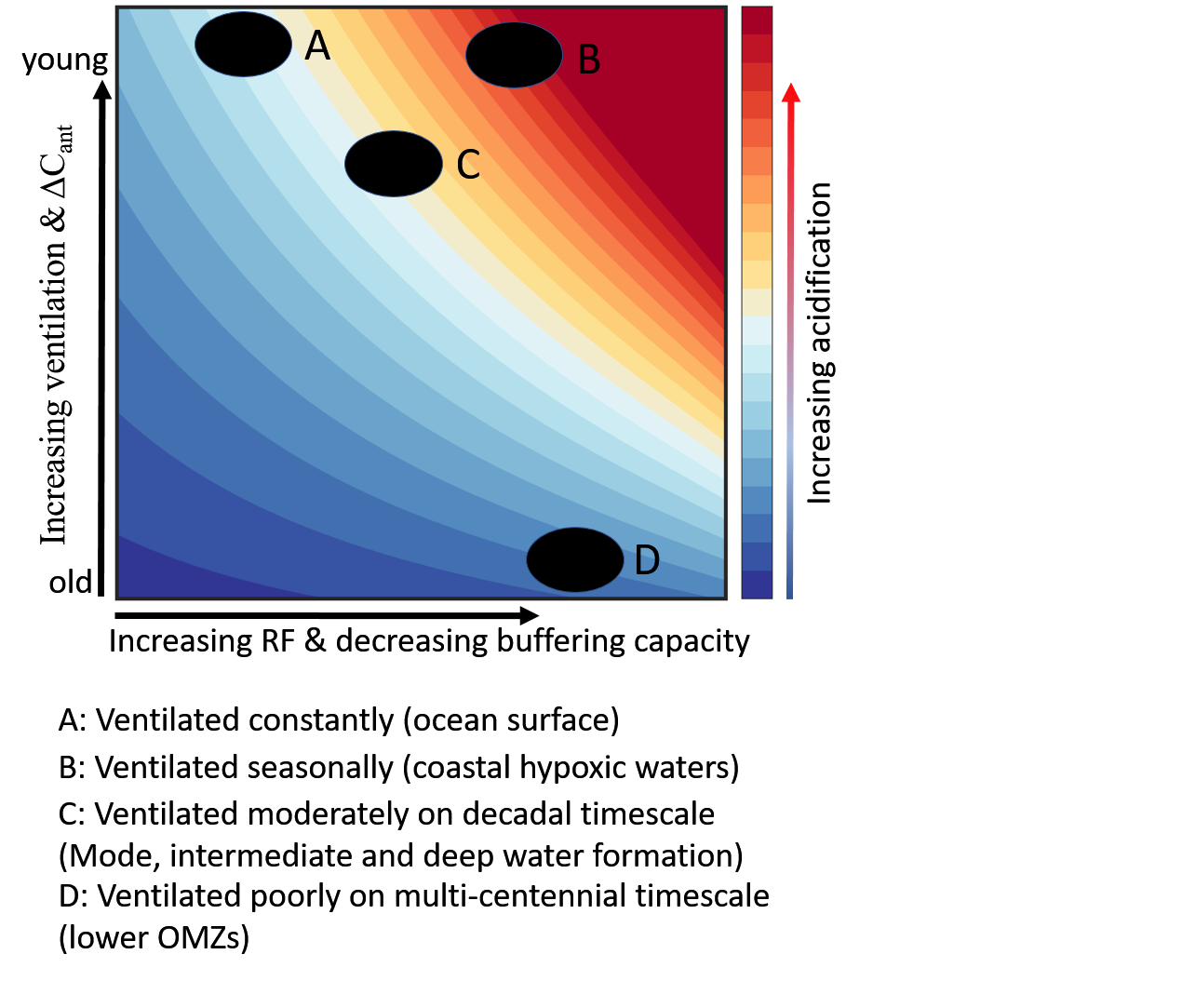 圖3 海洋通風(fēng)與碳酸鹽緩沖能力相互作用影響酸化示意圖